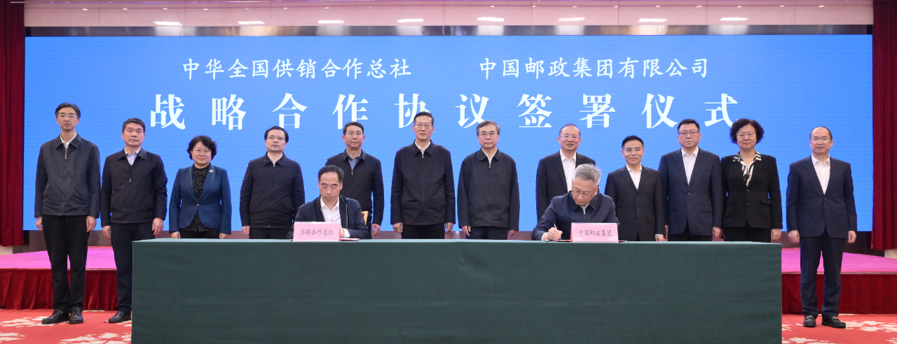 11月15日,中華全國供銷合作總社與中國郵政集團有限公司在京簽署戰略合作協議。總社黨組書記、理事會副主任韓立平,中國郵政集團有限公司黨組書記、董事長劉愛力出席簽約儀式并圍繞雙方加強合作進行座談。