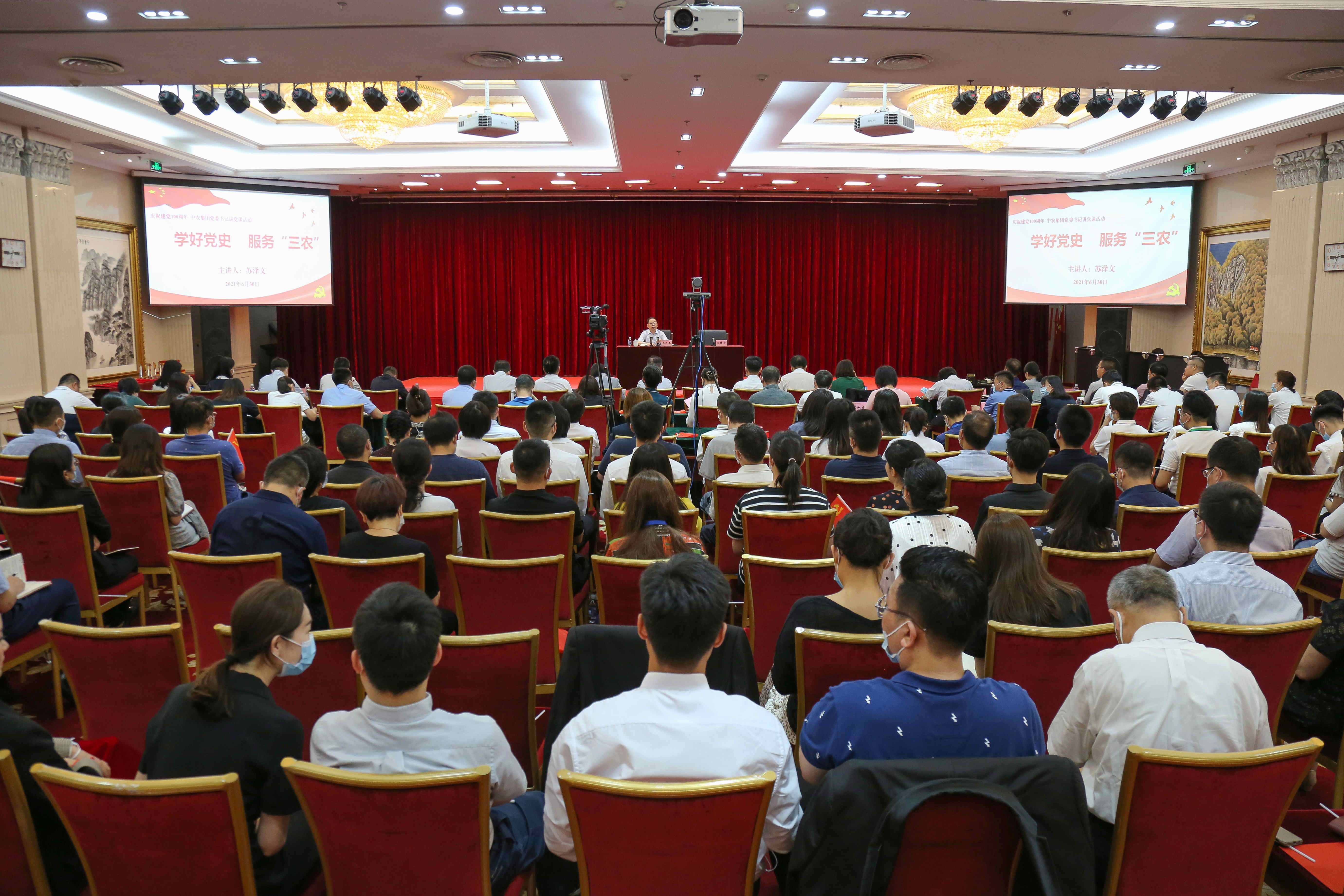 6月30日,中農集團黨委書記、董事長蘇澤文為集團黨員干部作題為《學習黨史 服務“三農”》的黨史學習教育專題黨課。中農集團黨委專職副書記馮建芳主持會議。供銷集團黨史學習教育領導小組辦公室主任、第一指導組組長陳祖新到會指導。中農集團及中農控股領導班子成員、中農集團紀委委員出席會議。