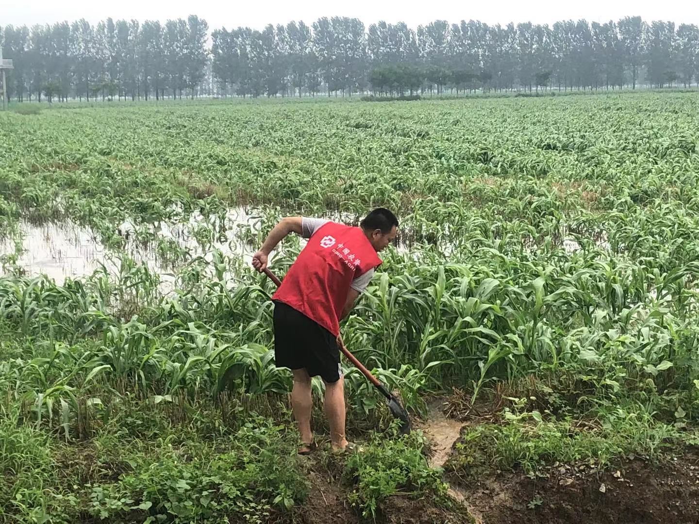 7月23日,雨剛一停止,種植基地立即組織員工開展耕地排澇工作,共組織3臺挖掘機,20余人,每天工作12個小時以上,經過3天的努力,漯河中農種植基地2817畝秋作物全部完成排澇,將損失降到了最低。
