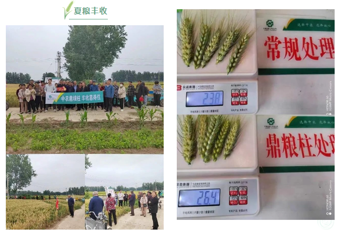 風吹麥浪,滿目金黃。近期,河南永城市順和鎮的小麥示范田里人頭攢動,經過一系列的測產、對照,中農立華“中農鼎糧柱”方案使用后的小麥成穗率高,籽粒飽滿,一穗可多結2-4個籽,每畝最高增產140斤,各項優異表現贏得現場農戶的認可。