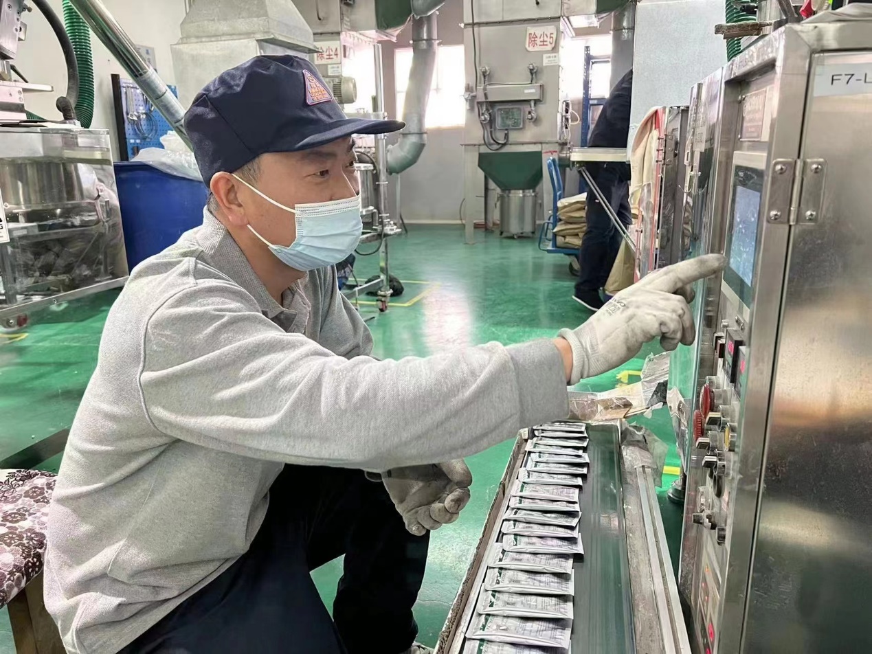 中農立華天津生產部王紅五,主要負責小袋立式機設備及賦碼團隊管理,通過刻苦鉆研設備技術,解決了多個技術難點。為提高生產效率,優(yōu)化生產工藝作出積極貢獻。春耕生產旺季,他帶領團隊加班加點,每天工作時長達16個小時,成為保障供應的堅實后盾。