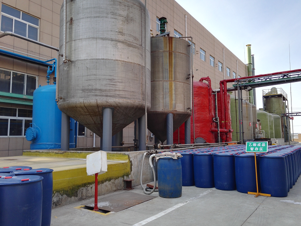 圖為將灌出來的乙酯成品整齊的排放在暫存區(qū)