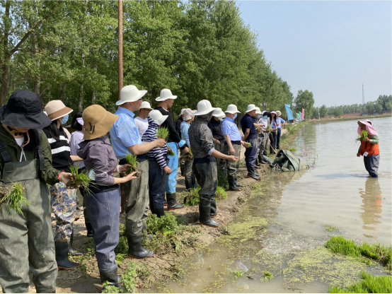 本次活動恰逢“五一”勞動節后天氣最炎熱時期,各黨支部黨員代表頭頂高溫下水田插秧,體驗插秧農活、學習稻蝦養殖技術,還參觀了京西稻博物館和大米生產流水線,通過對比傳統和現代稻米種植、加工技術的巨大差別,深刻體會科技興農和推動農業社會化服務的重要性和必要性。