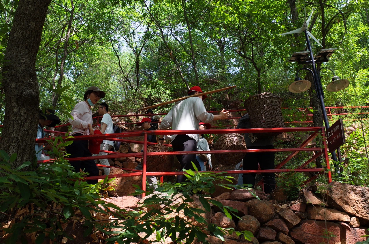 參觀紅谷黨員教育基地期間,青年干部職工重走紅色抗戰小路,體驗用扁擔、背簍運輸物資,切身感受抗日戰爭時期軍民在山高路窄、條件艱苦的環境下運輸物資的艱辛與不易,激勵供銷青年在新時代更好傳承和弘揚供銷合作社“扁擔精神”“背簍精神”。