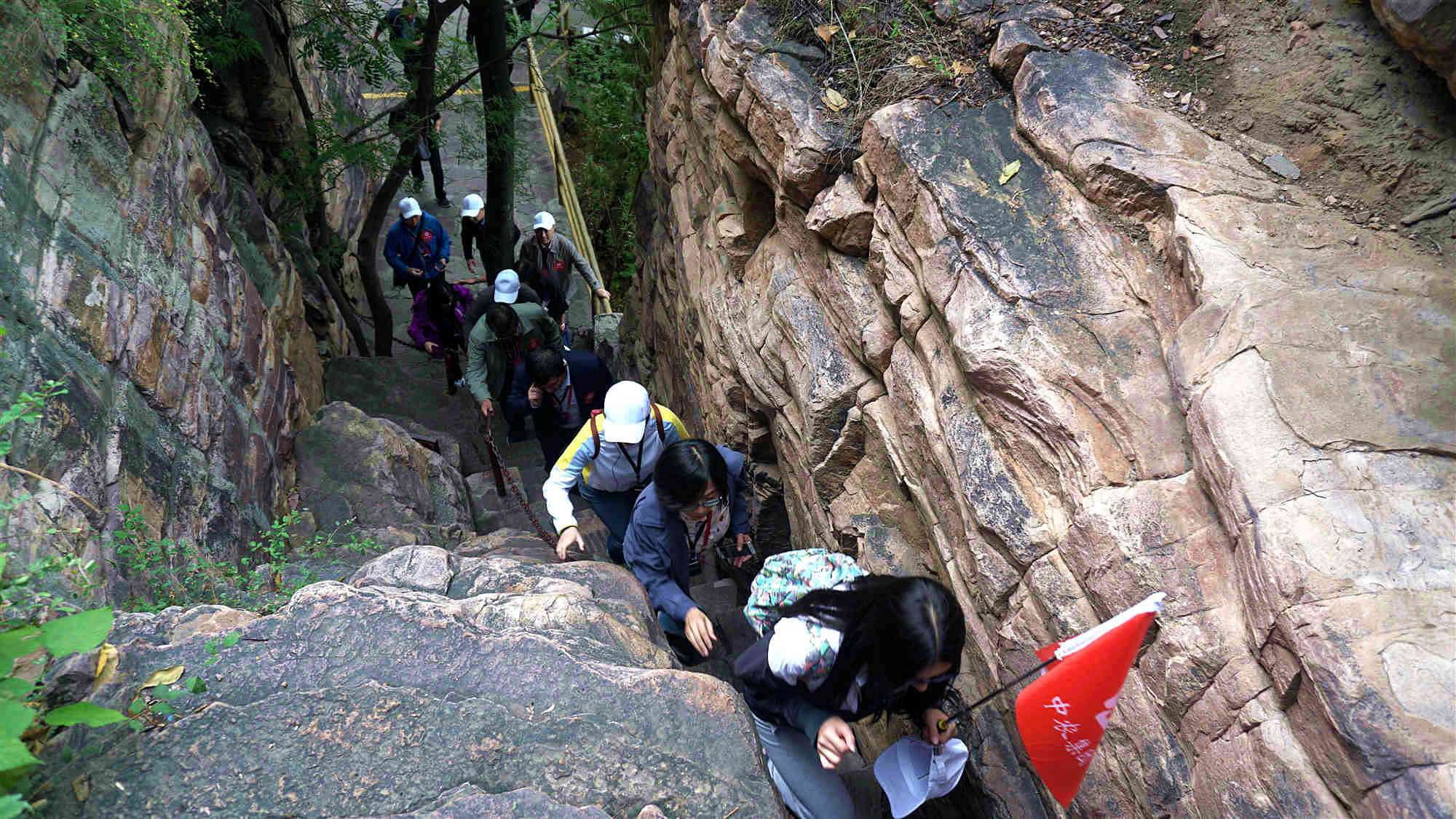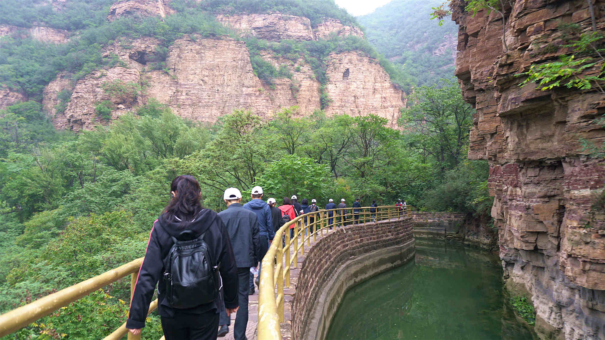 攀登著層層石階,凝視著建在千仞峭壁上的工程,我們仿佛看到當年就在這上無寸物可攀、下無立足之地的半山絕壁上,修渠人腰系繩索,掄錘打釬,硬生生開鑿出一條“人工天河”。一股剛健自強、生生不息、創新進取的精氣神,穿越時空震撼著我們每一個人。
