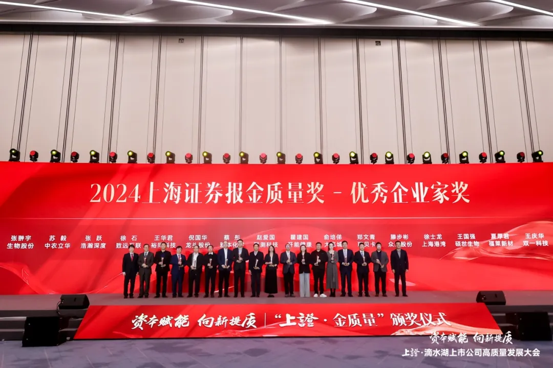 12月27日,由上海證券報主辦的“2024上市公司高質量發展大會暨‘上證·金質量’頒獎儀式”在上海隆重召開。