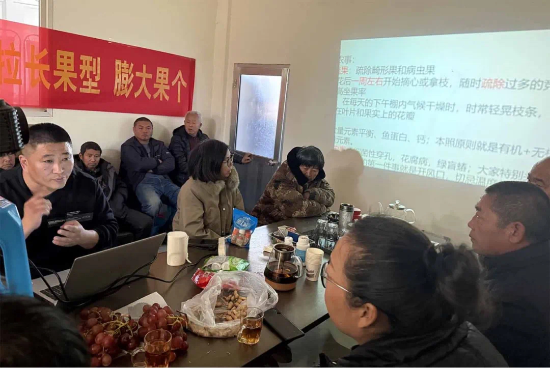 在山西永濟冬棗種植區,棚外寒風呼嘯,棚內生機勃勃。中農立華作物健康部山西技術服務團隊高耀、郭繼澤等放棄春節與家人團聚的機會,深入田間地頭,為棗農們提供技術服務。