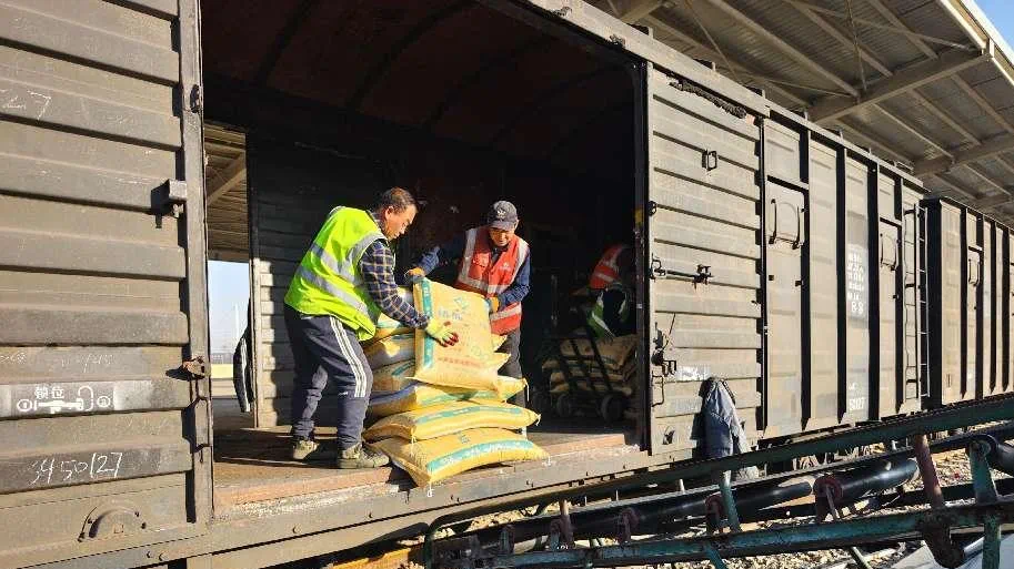 春節(jié)期間,當(dāng)滿載化肥的列車到站后,中農(nóng)(內(nèi)蒙古)農(nóng)資公司員工冒著嚴(yán)寒,堅守一線,緊張有序地組織卸貨、清點、搬運等工作,為春耕農(nóng)資保供做好準(zhǔn)備工作。