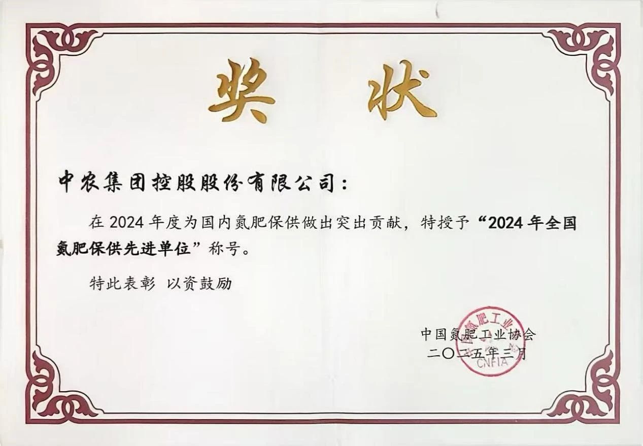 中農控股榮獲“2024年全國氮肥保供先進單位”稱號