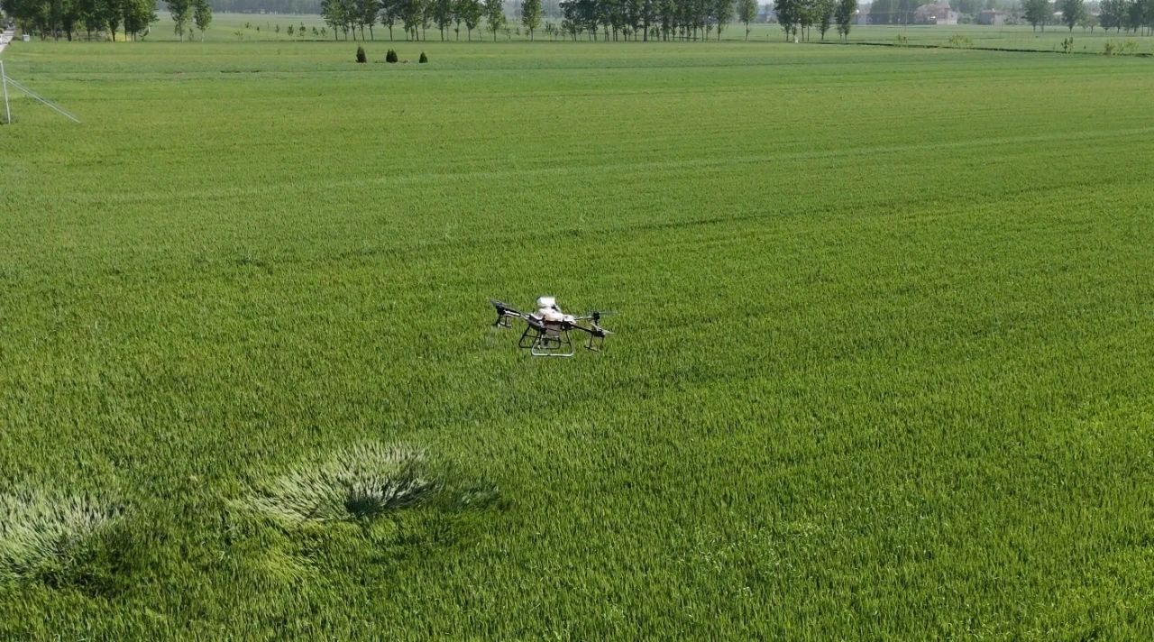 目前,技術團隊已經形成了一套符合許昌小麥苗情的本地化方案,同時引入無人機飛防,對連片麥田實施高效統防統治,單機日均作業面積超400畝,既解決了小農戶分散田塊施藥難題,又確保了藥劑均勻覆蓋,科學、高效遏制紋枯病的發病范圍。