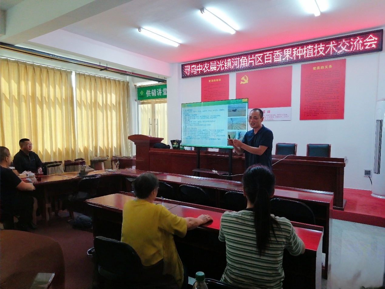 為從根本上提升種植戶的技術水平,尋烏為農服務中心構建起“培訓+實踐+服務”的技術幫扶體系。一方面,開展百香果種植專題技術培訓會,圍繞選種育苗、水肥管理、病蟲害防治等關鍵環節,進行實操指導;另一方面,聯合當地種植大戶打造示范園,定期組織周邊農戶參觀,現場展示試驗效果對比,詳細講解提高產量品質、降低成本的技術措施和管理經驗。同時,運營“百香果技術助農群”,技術人員在群內定期分享種植經驗,并實時解答種植戶遇到的問題,實現24小時技術響應。